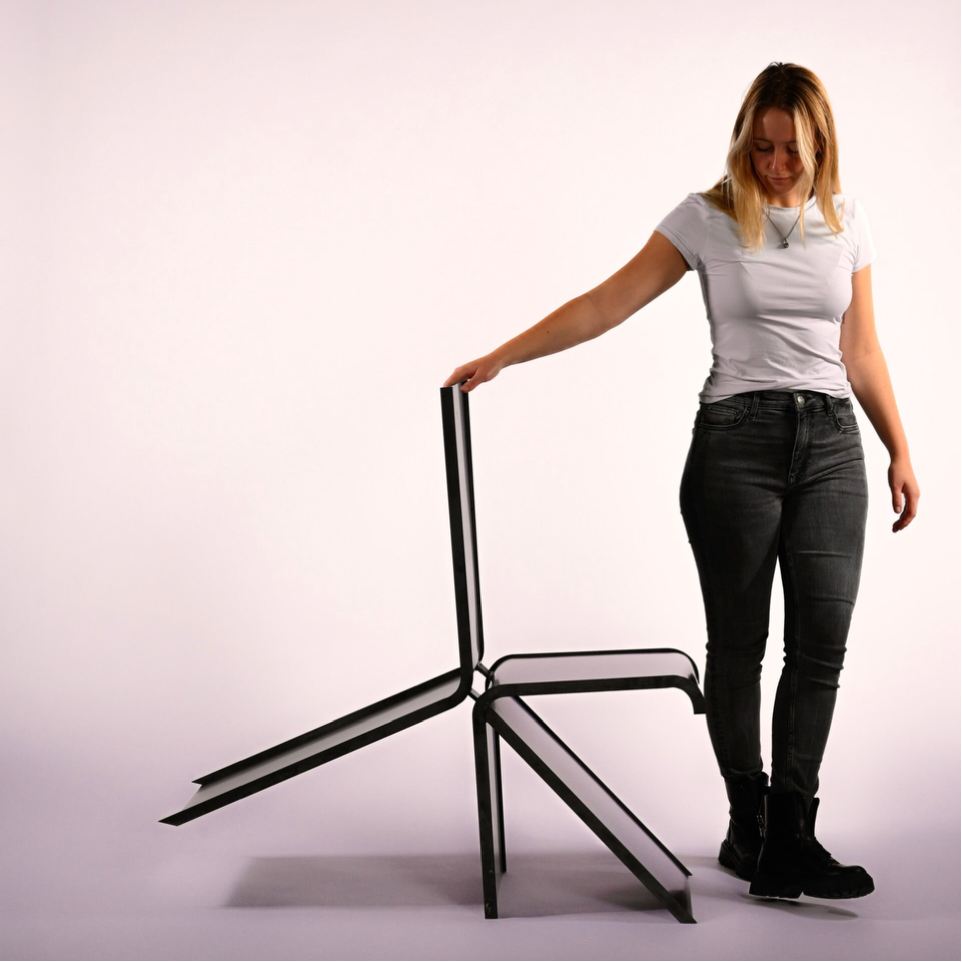 geven, een kleine overgave aan het onbekende. Net op het moment dat je denkt dat je de controle verliest, land je zachtjes op de grond. Wat eerst een moment van onzekerheid leek, verandert in een verrassend mooie ervaring. Een stoel die je niet alleen laat zitten, maar laat voelen.